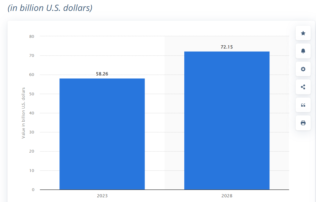 IMARC Group과 Statista의 전망에 따르면 2023년부터 2028년까지 Self-Storage 산업은 연평균 5% 수준으로 성장할 것이라고 합니다. (2028년 산업 규모: 80조 수준 전망)