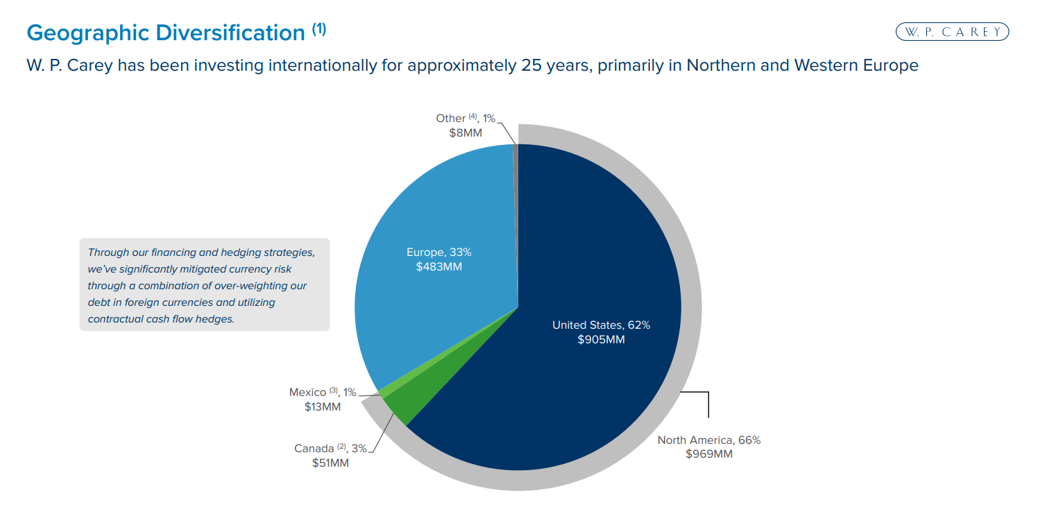 단, 미국 외 지역의 비중이 38% 수준이라는 것은 다른 리츠보다 해당 리츠가 지역적으로 잘 분산되어 있음을 의미합니다.