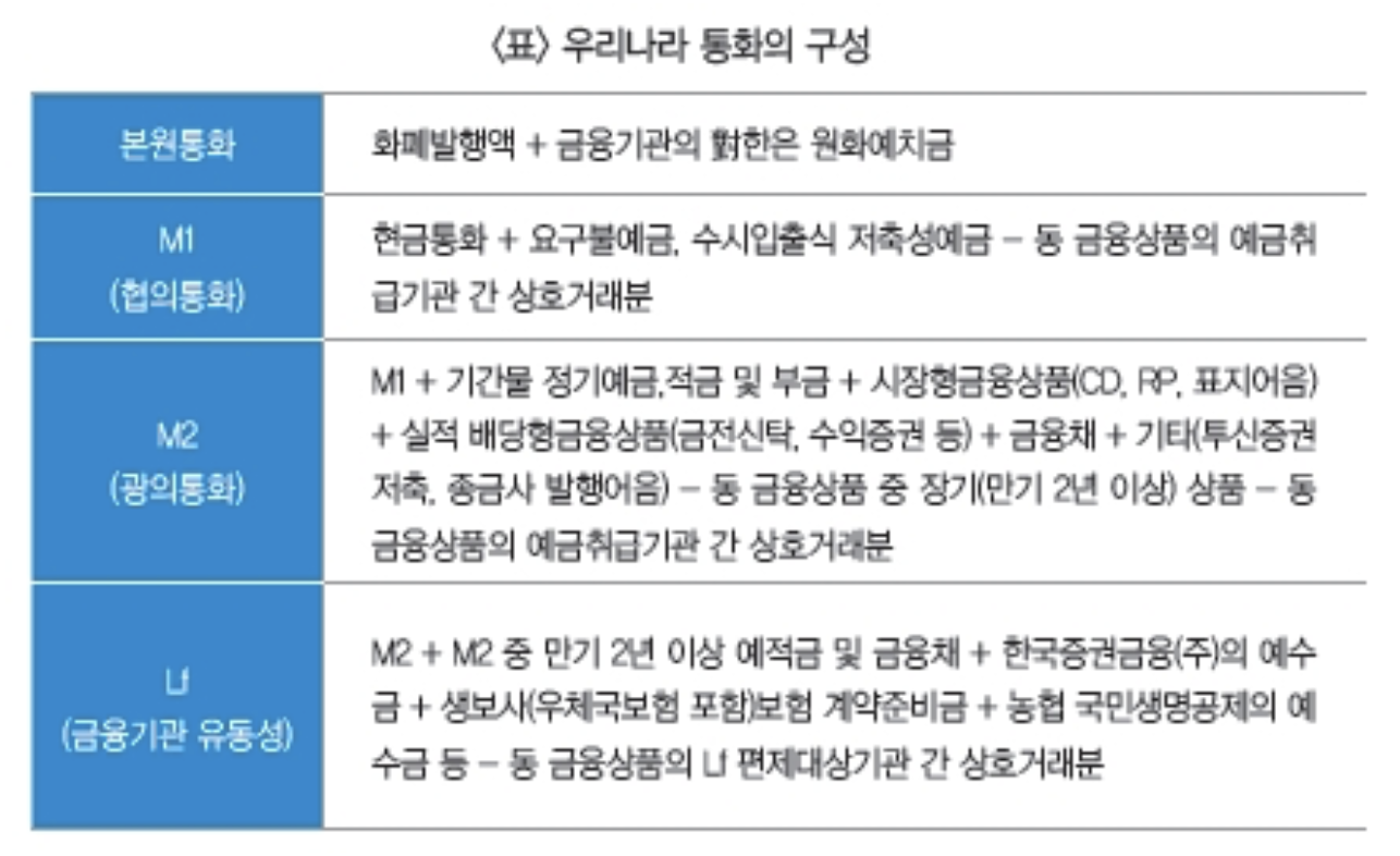 한국은 M1을 중심으로 통화를 관리해 오다가 국가의 경제규모가 커지고, 금융시장이 발전함에 따라 1979년부터 M2 중심체제로 바꾸었습니다. 그 이후에도 지속적으로 금융자산의 규모가 커지고 상품이 다양화되자 중앙은행이 통화정책 의사결정을 내리는 데 더욱 다양한 지표를 필요로 하게 되며 Lf까지 참조하게 되었습니다.