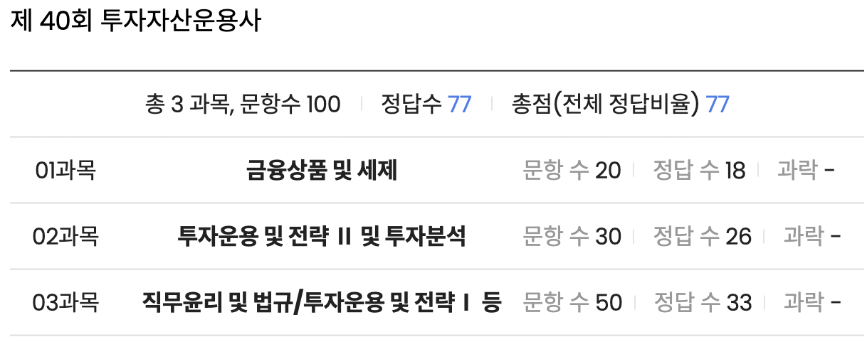2025년 1월 19일에 응시한 40회 투자자산운용사 시험의 합격여부가 오늘 발표되었습니다.