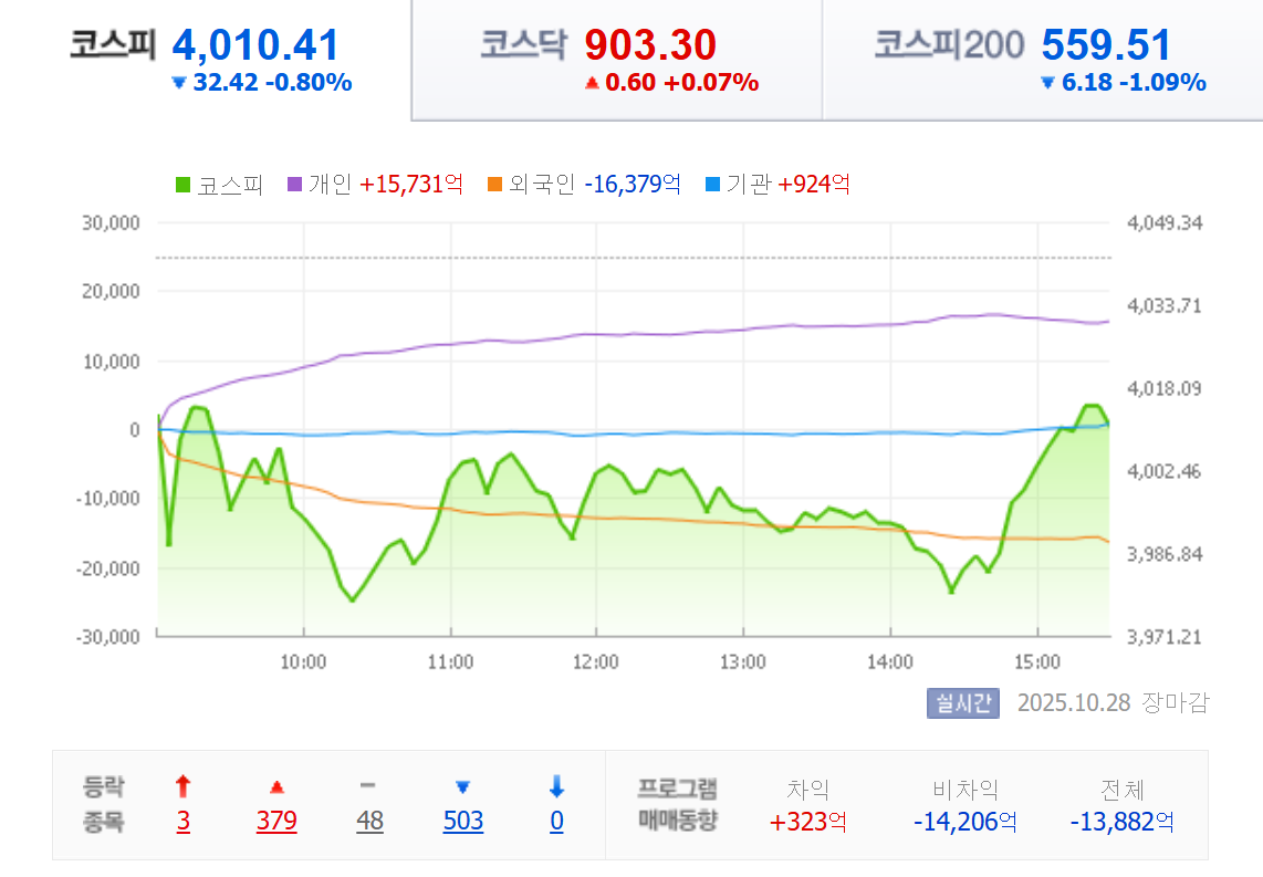 | [투자정보] 10월 29일 국내증시 마감시황 (0) | 2025.10.29 |