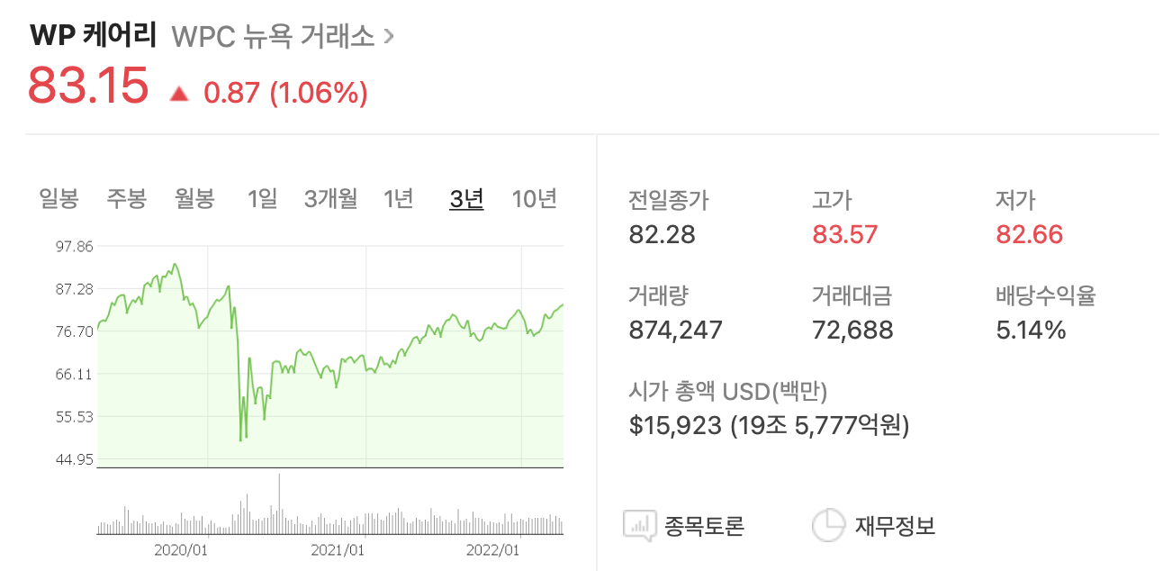 오늘은 미국 주식시장에 상장된 고배당 리츠인 WP케어리에 대해 알아보도록 하겠습니다.